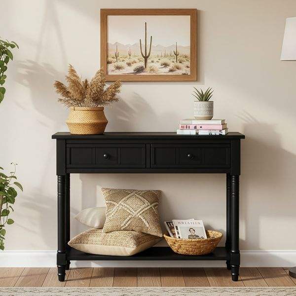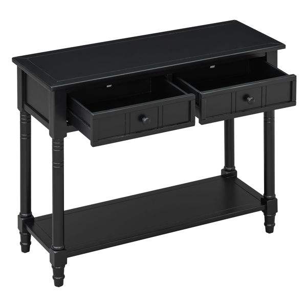 Traditional Design Console Table with Two Drawers and Bottom Shelf in Black-Self Pick up Not Supported