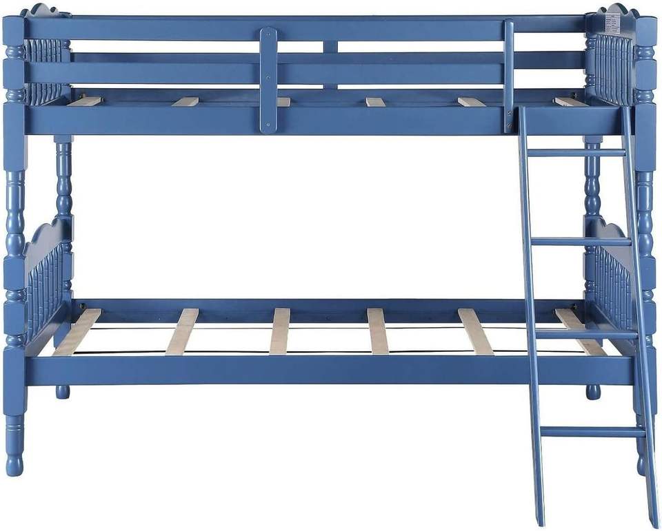 Traditional Design Solid Wood Twin Bunk Bed with Carved Blue Legs Ladder & Guard Rail Classic Carved Blue Legs