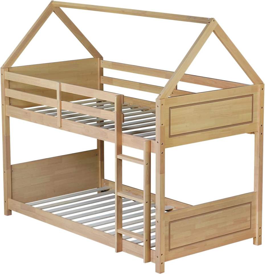Traditional Design White Oak Solid Wood Twin Over Twin Bunk Bed with Headboards Footboards Guardrails Ladder Made Rubber Wood