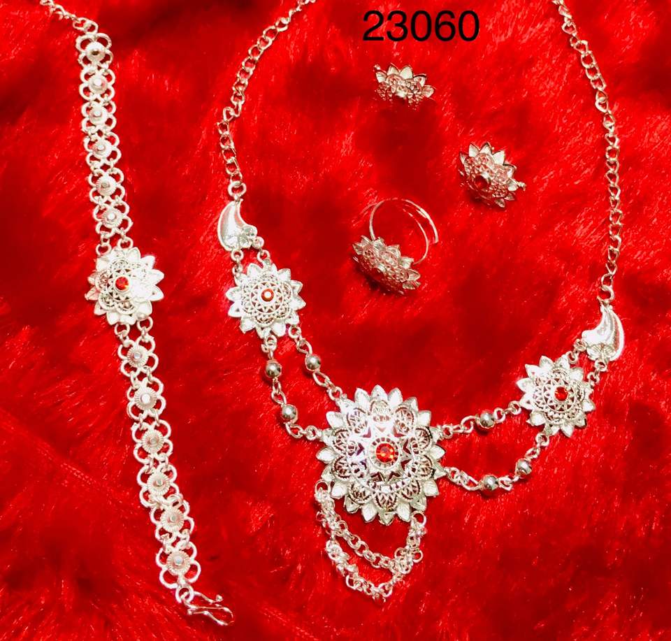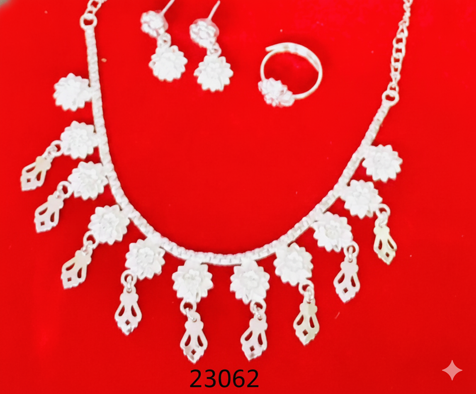 Traditional Designer Imitation Jewelry Set for Women Gold Plated Floral Necklace Ring Earrings Model No. 23059