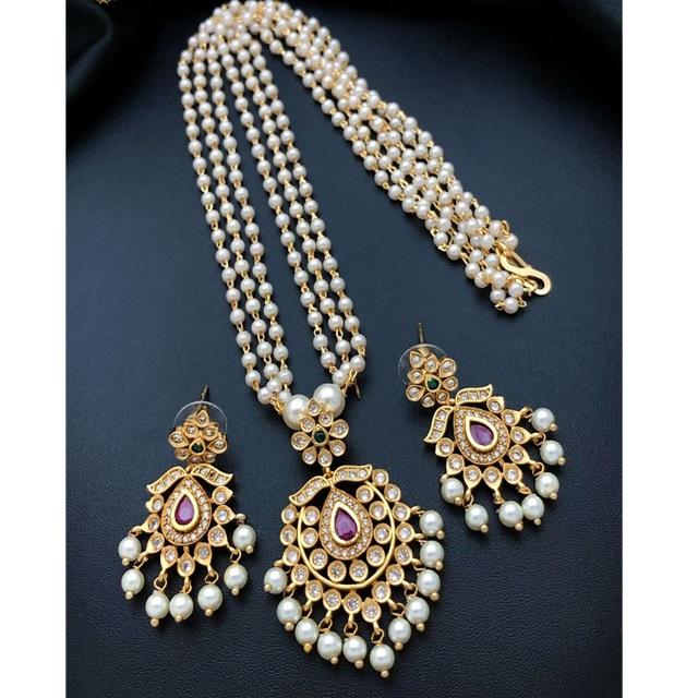 Traditional Designer Three Layer Pearl Necklace Set With Earrings New Style Necklace Set for Wedding Wear Party Wear For Women