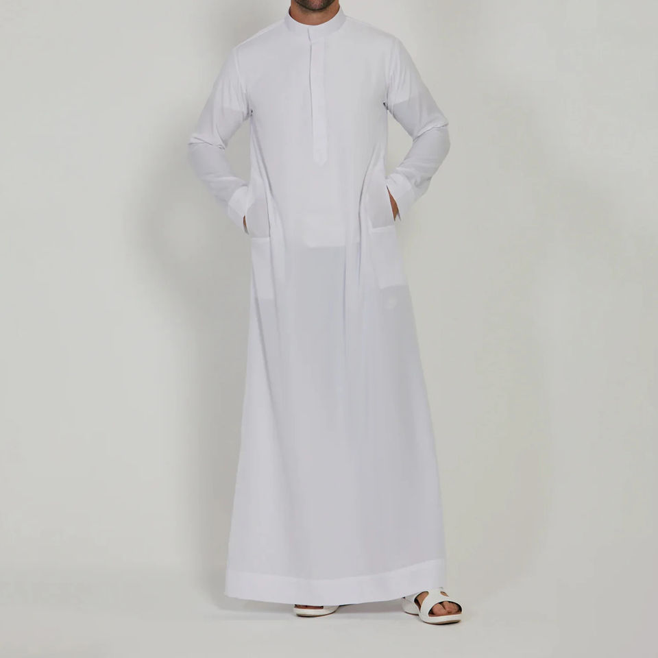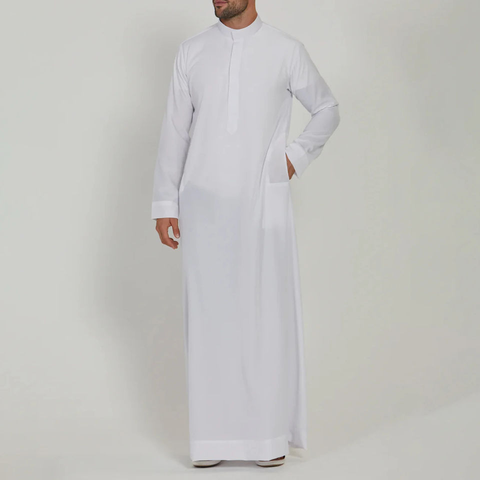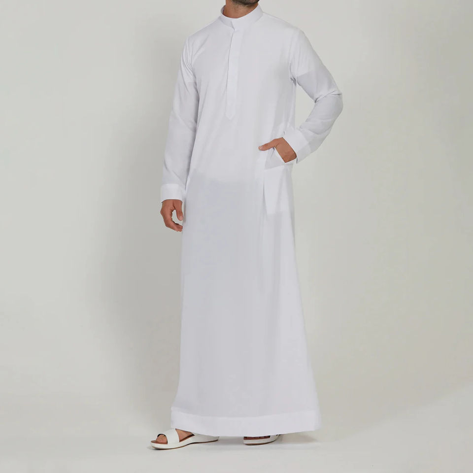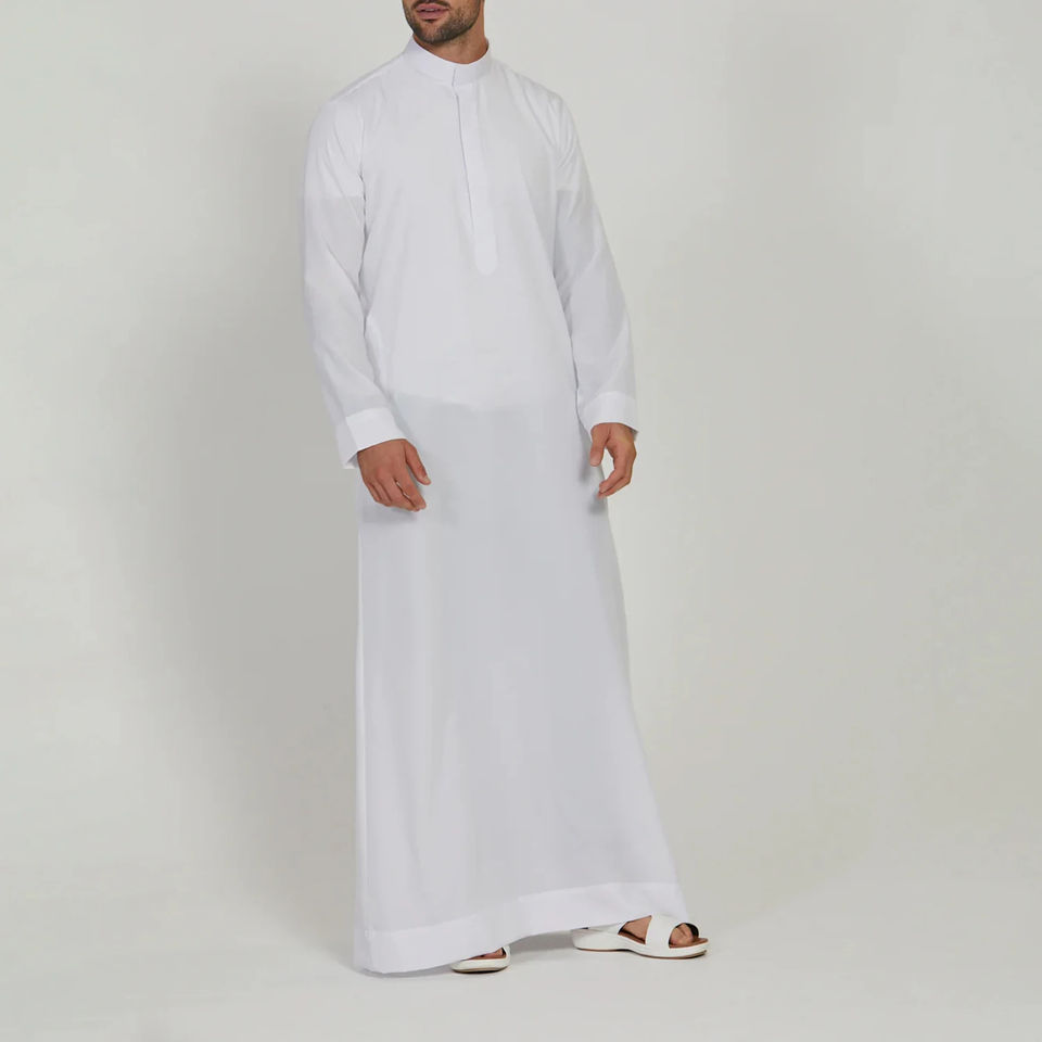 Traditional Elegant Men's Arab Thobes Solid Color Cotton Linen Thawb Floor Length Lightweight Breathable Long Sleeves Casual