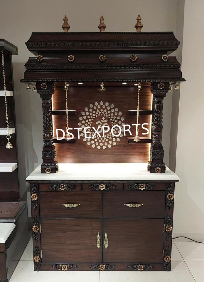 Traditional Elephant Design Wooden Mandir For Home Customized Hand Carved Elephant Pillar Teak Wood Temples Pooja Ghar Australia