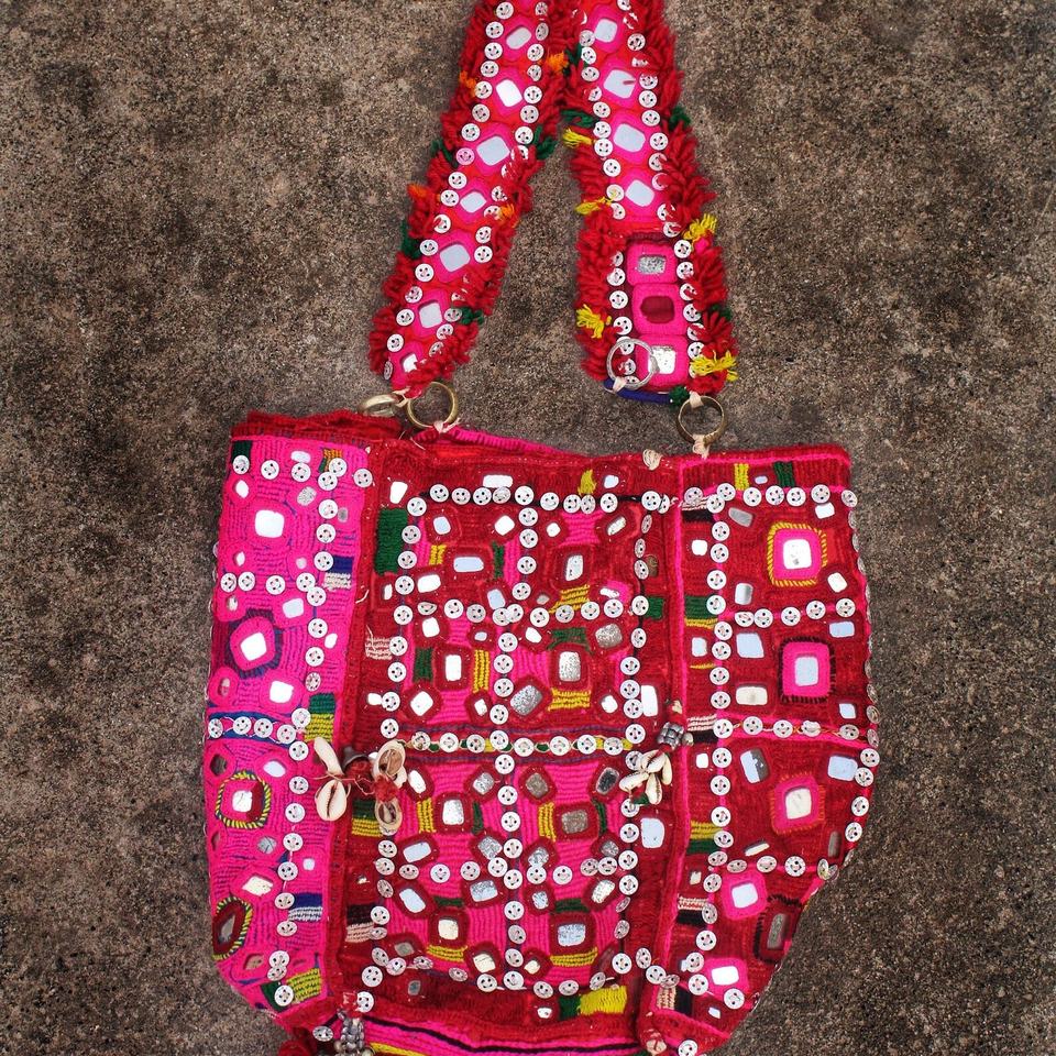 Traditional Embroidered Long Bag Tassels for Women Vintage Handbag Boho Hippo Style Indian Banjara 100% Cotton Shoulder Bag