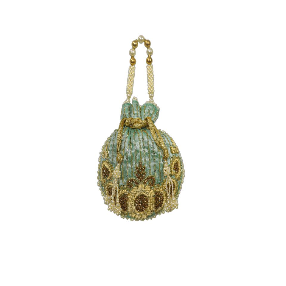 Traditional Embroidered Women's Mini Potli Handbag with Pearl Handle Fashion Style for Wedding Evening Party Ethnic Wear Gifting