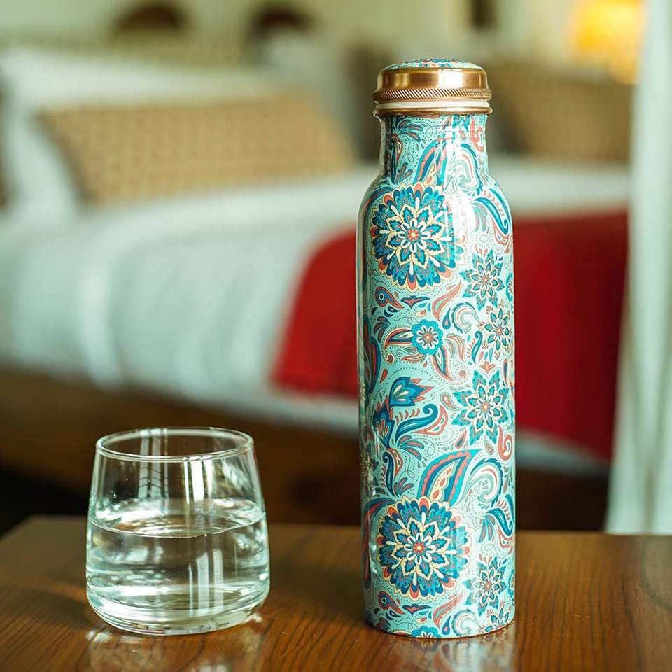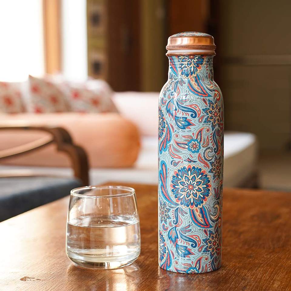 Traditional Exact Handcrafted Meenakari Art Copper Bottle 1 Litre Flower Mandala Design Pure Copper Bottle for Gifting