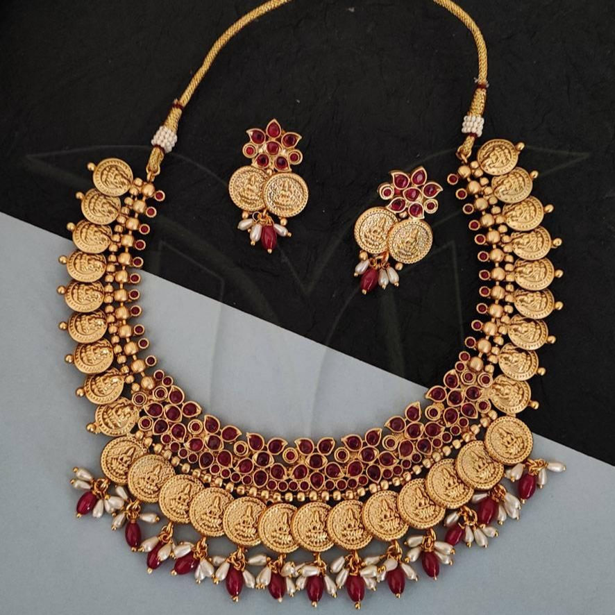 Traditional Fancy Design Party Wear Jewelry Accessories Temple Designer Wear Jewelry Temple Coin Short Necklace Set Jewelry