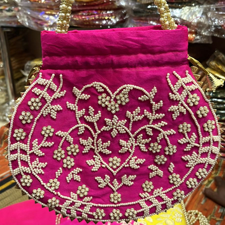 Traditional Fancy Designed with Pearls & Thread Embroidery Women's Evening Handbag Clutch Purse Potli Basket Bag