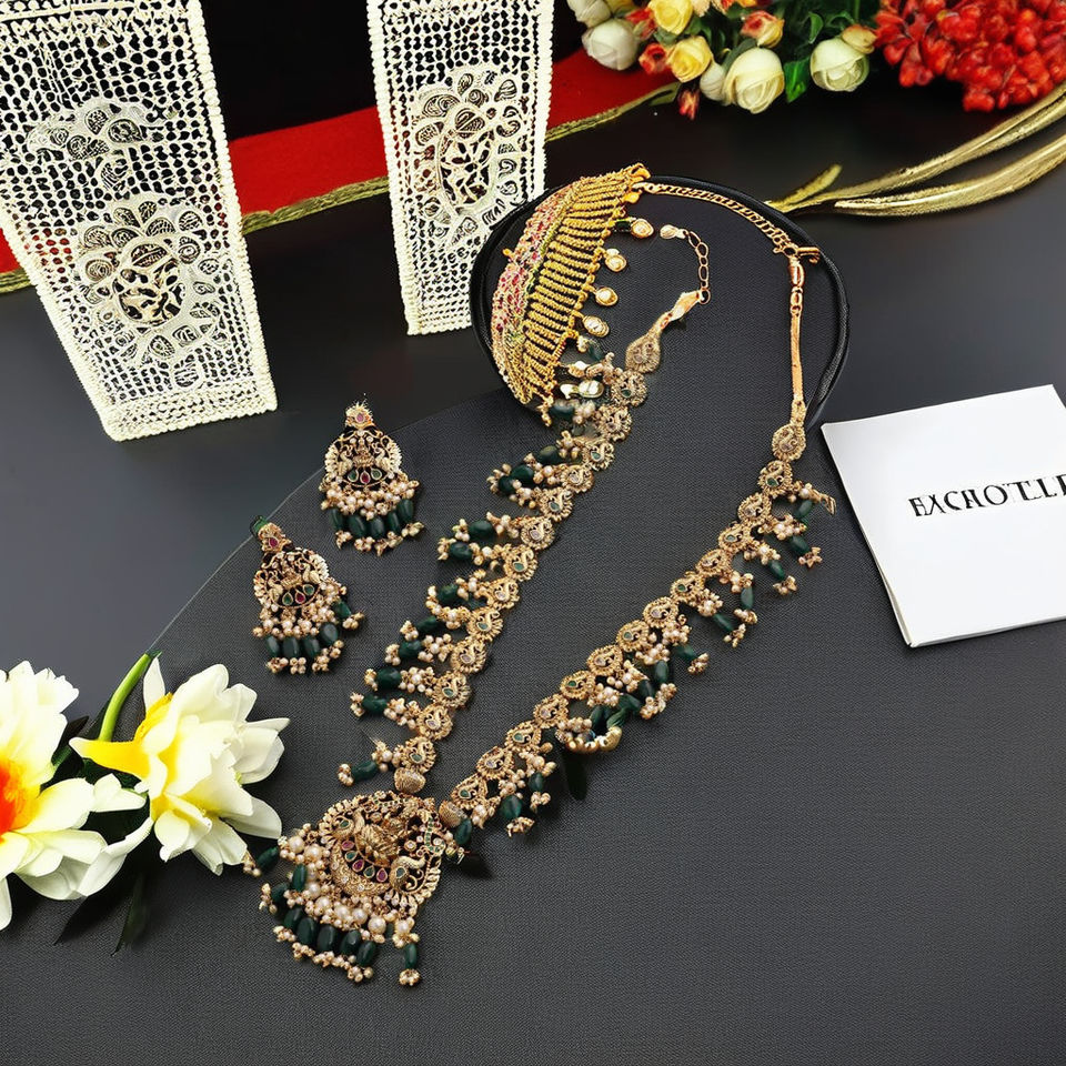 Traditional Festival Matte Plated CZ Zircon Stone Long Necklaces Luxury Artificial Wedding Jewelry Export