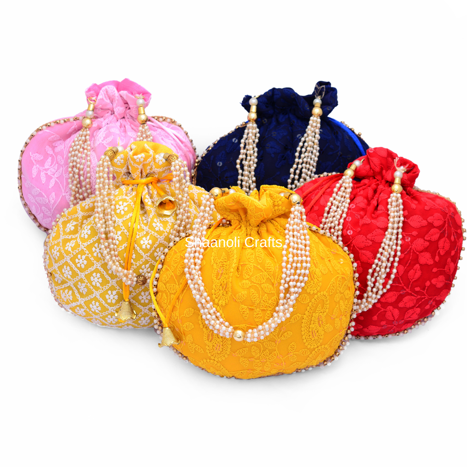 Traditional Festival Purse Handmade Handmade Chikankari Thread Work Potli Bags Luxury Evening Potli Bag for Womens