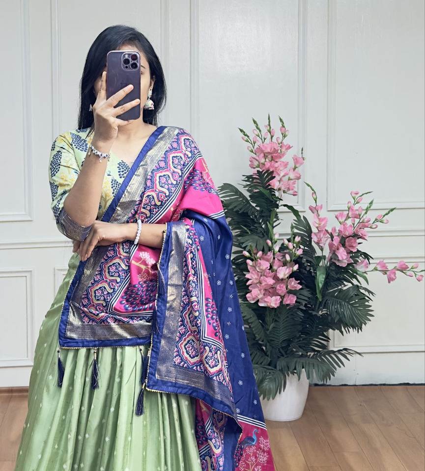 Package Contain:Lehenga, Blouse, Dupatta, Drawstring with Zip, Tassels
