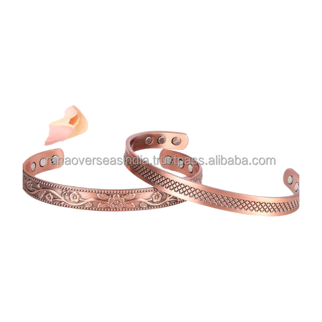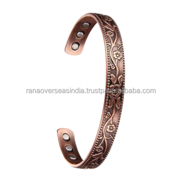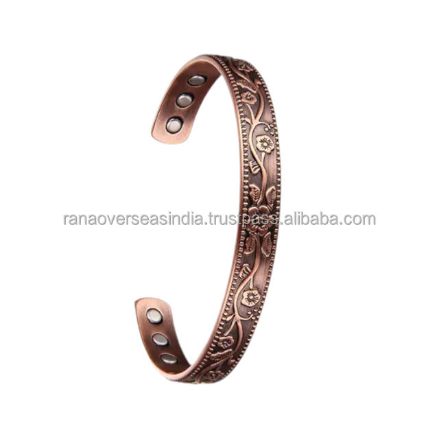 Traditional Floral Pattern Pure Copper Bracelet Arthritis and Joint Pain Relief Open Cuff Bangle for Women and Men at Low Price