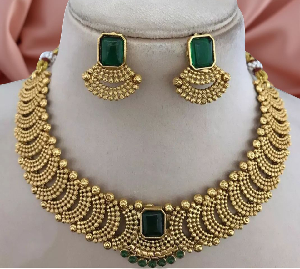 Products Name:Traditional Tempal Laxmi Necklace Jewellery Set