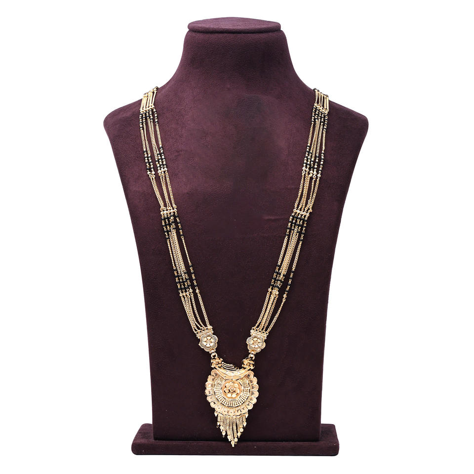 Traditional Gold Plated Mangalsutra Pendant Brass Material Bridal Jewelry with Black Beads for Weddings & Orthodox Traditions