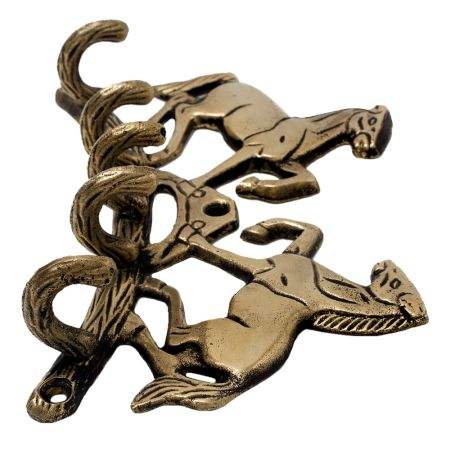 Traditional Golden Brass Two Standing Horses Design Hooks Hanger Wall Reusable Utility Hat Bags Clothes Heavy Duty BTH-264