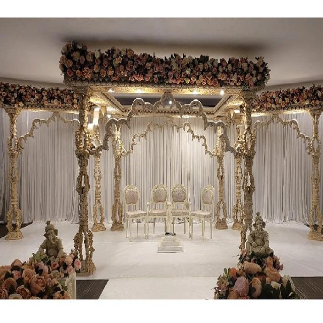 Traditional Gujarati Wooden Wedding Mandap USA DST Exports Square Mandap for Marriage Indian Wedding Decoration Factory Price