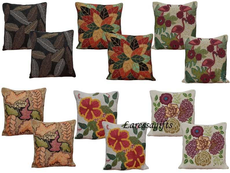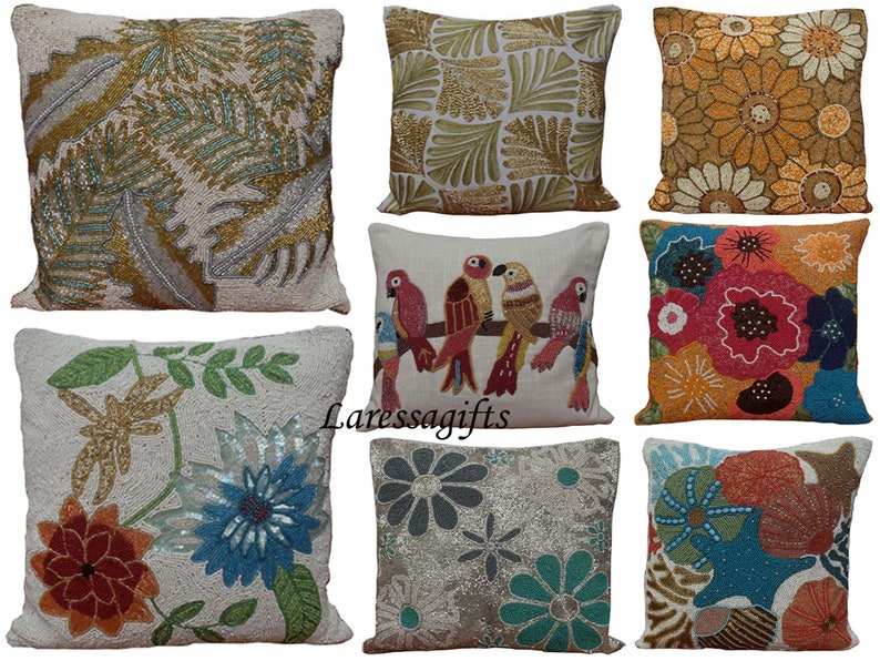Traditional Hand Beaded Cushion Cover for Bedroom Decor Ethnic Embroidery Cushion Cover with Seed Beads Detailing