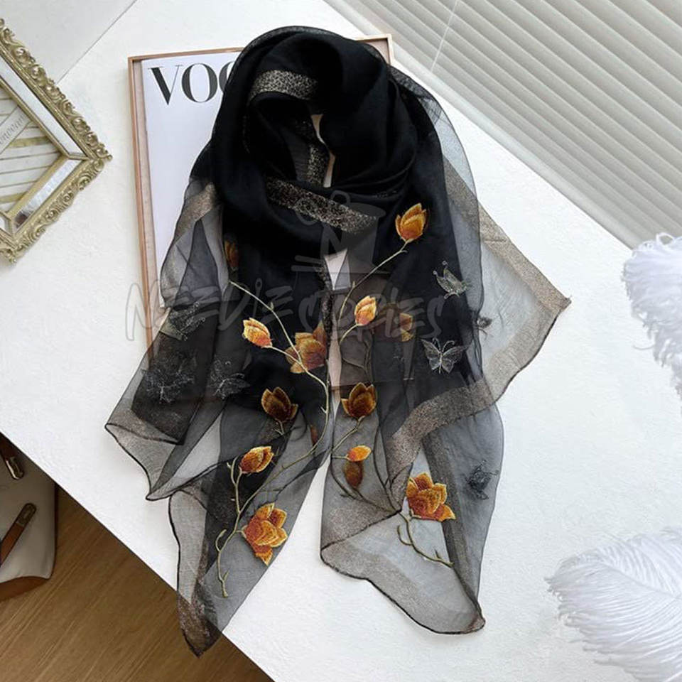 Traditional Hand Embroidery Silk Scarf Soft Warm Fabric Perfect Gift Idea For Fashion Conscious Women