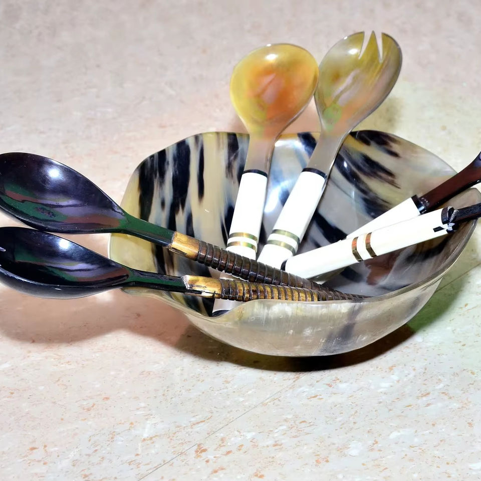 Traditional Hand Polished Natural Buffalo Horn Bowl With Spoon For Antique Style Kitchens At Cheapest Price By CRAFT ZONE EXPORT