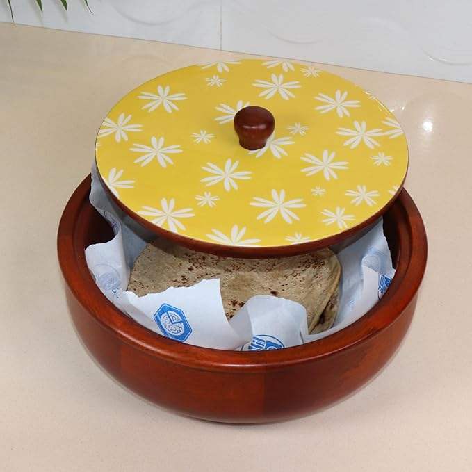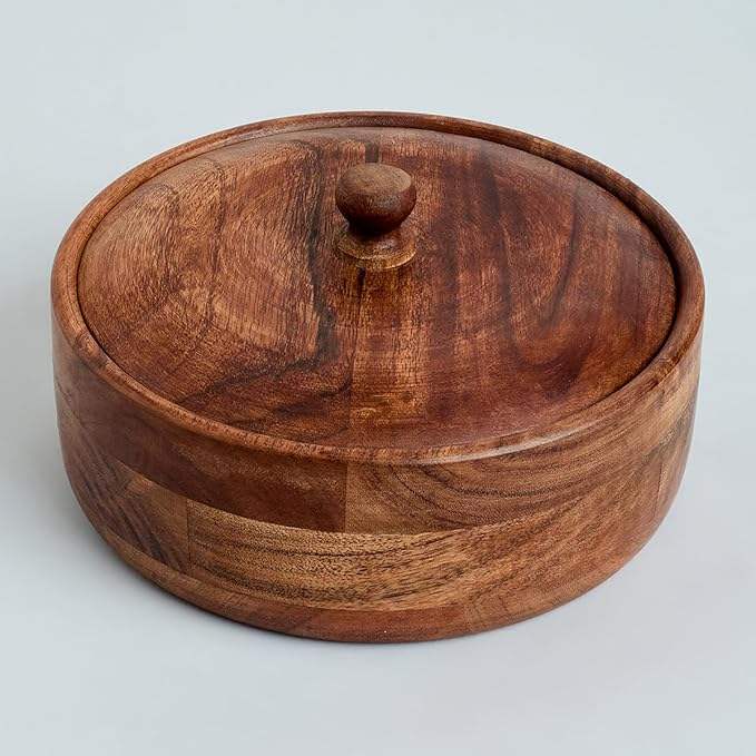 Traditional Hand-engraved Wooden kitchen box with natural wood grain for storing roti bread At Lowest Coast By AAlIYAN IMPEX