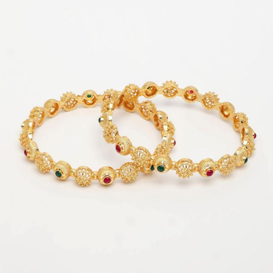 Traditional Handcrafted Floral Pattern Gold Finish Metal Craft Bangles Set Classic Ethnic Bracelet Jewelry for Women