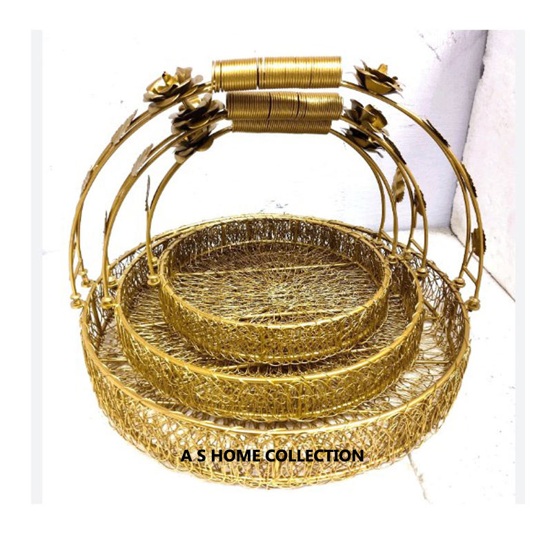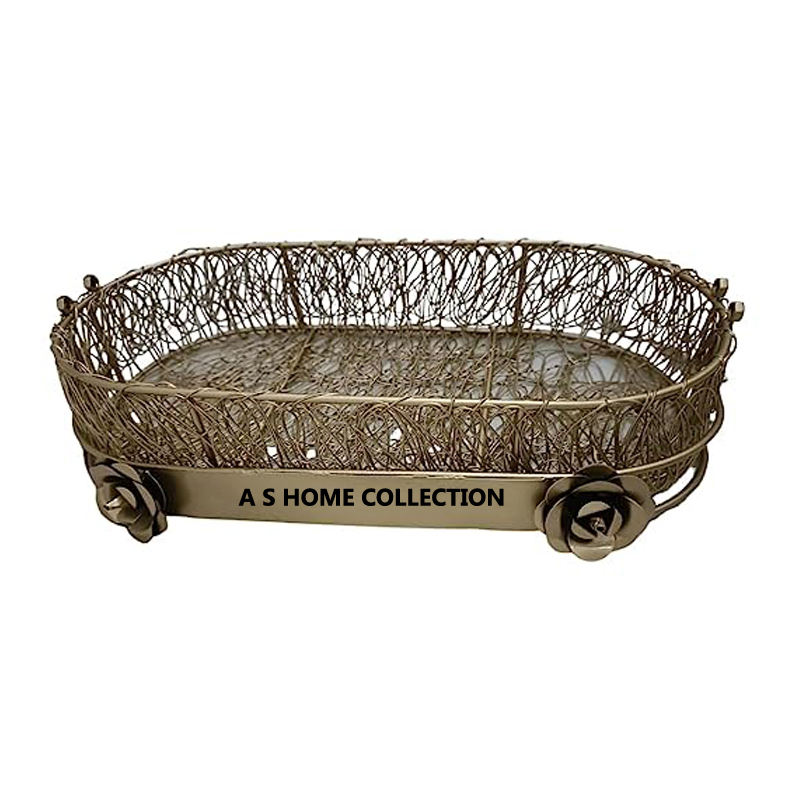Traditional Handcrafted Metal Gift Hamper Eco-Friendly Oval Shape Classy Design Basket Party Wedding Ornament Decor