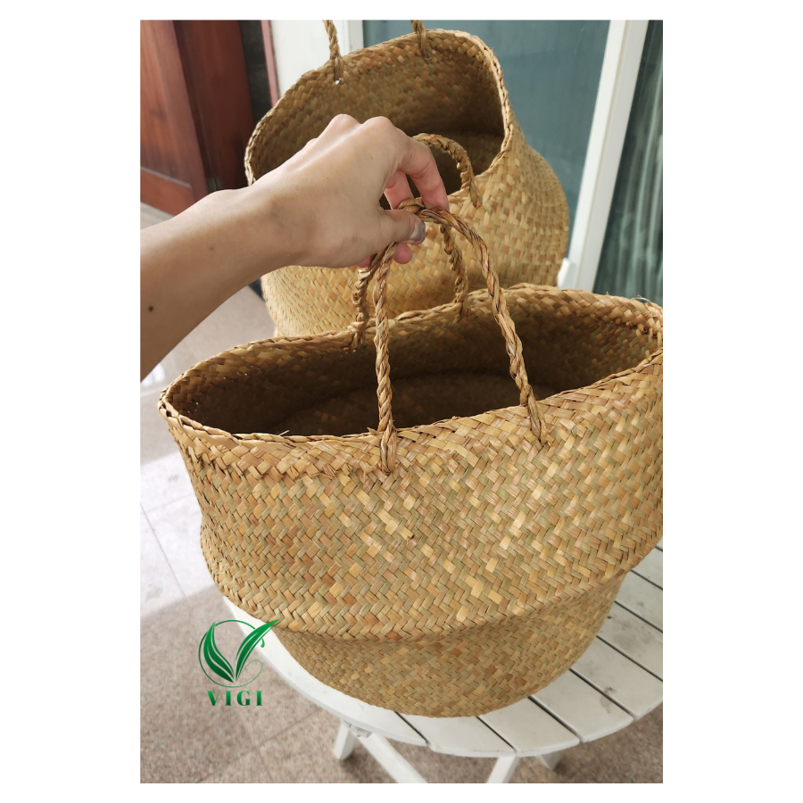 Traditional Handcrafted Seagrass Belly Basket For Storage And Organization