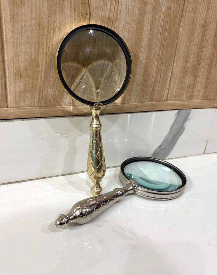 Traditional Handheld Brass Magnifying Glass With High Clarity Lens Ideal For Reading Small Texts And Documents
