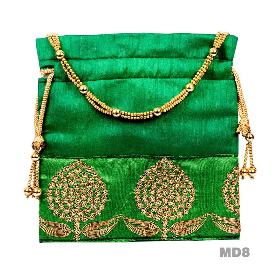 Traditional Handmade Ethnic Indian Embroidery Beautiful Green Colour Potli Bag Wedding Designer Party Pouch Bags for Women's