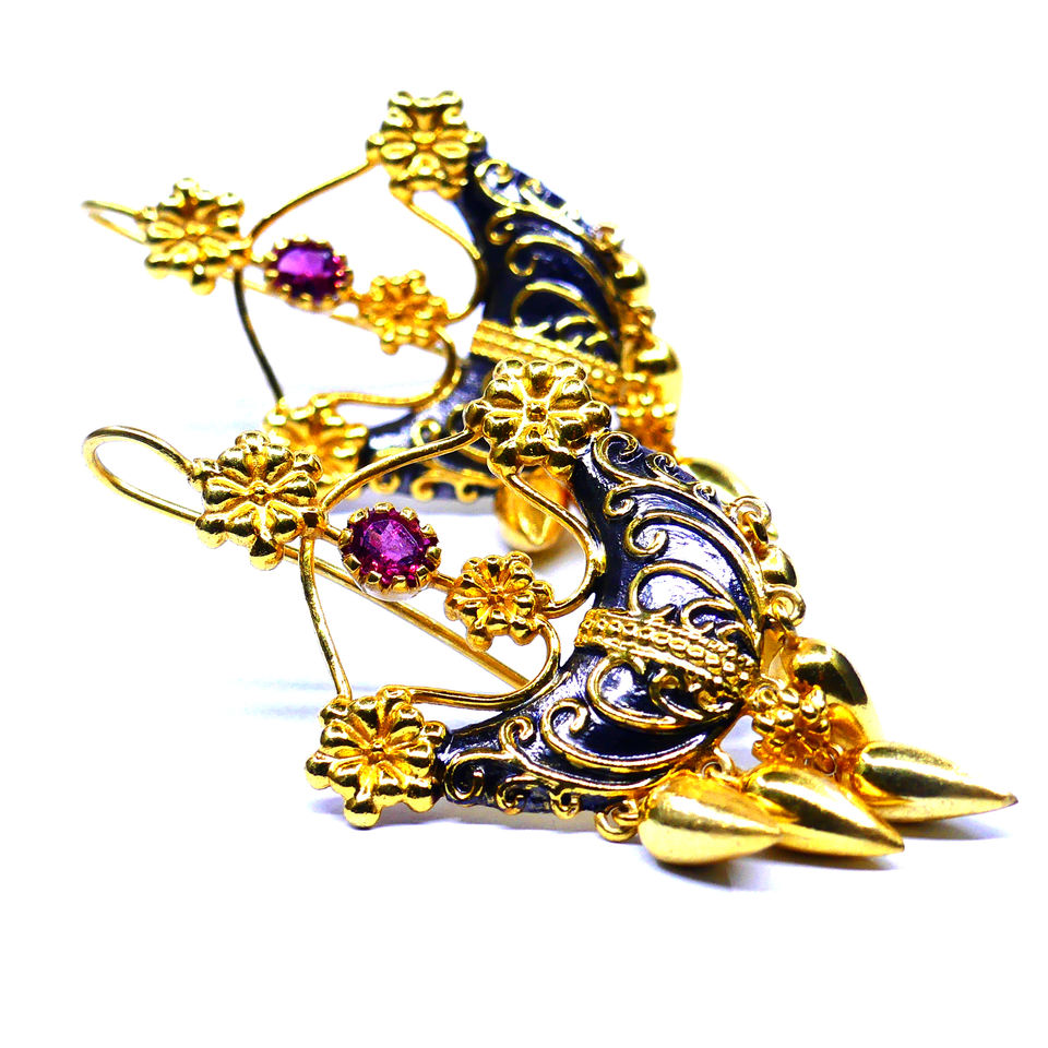 Traditional Handmade Gold Plated Tourmaline Earrings Set Elegant Women's Fashion for Weddings and Special Occasions