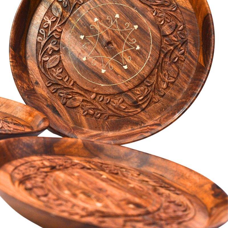 Traditional Handmade Wooden Rustic Platter Set of 3, Beautiful Handcraft Rusty Platter, Woodcraft Rusty Platter