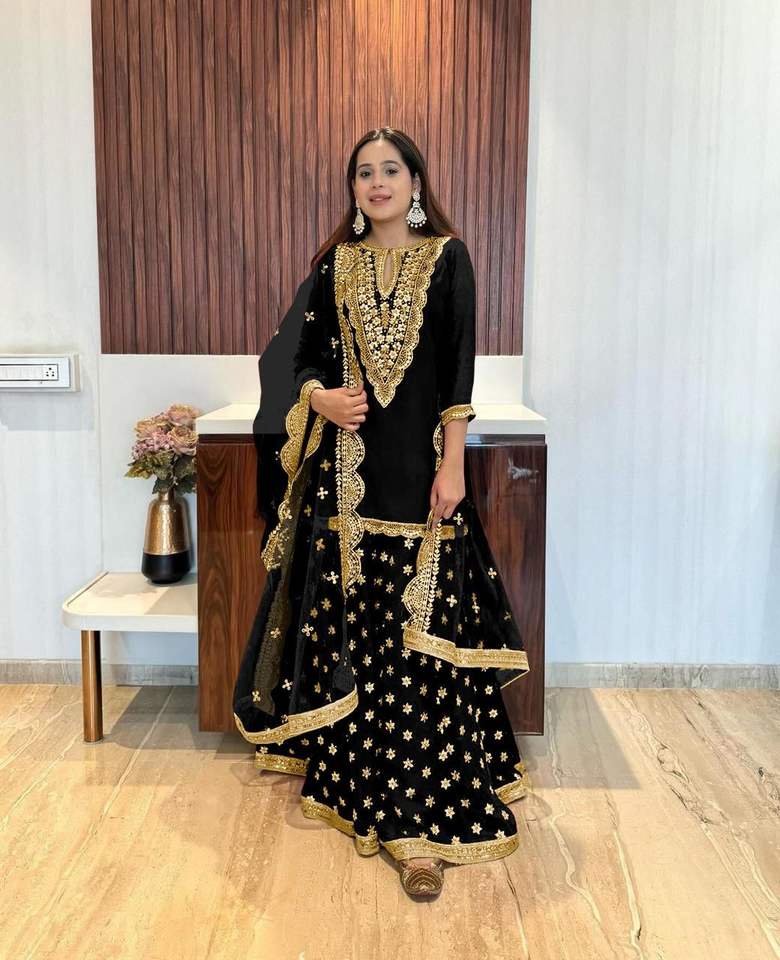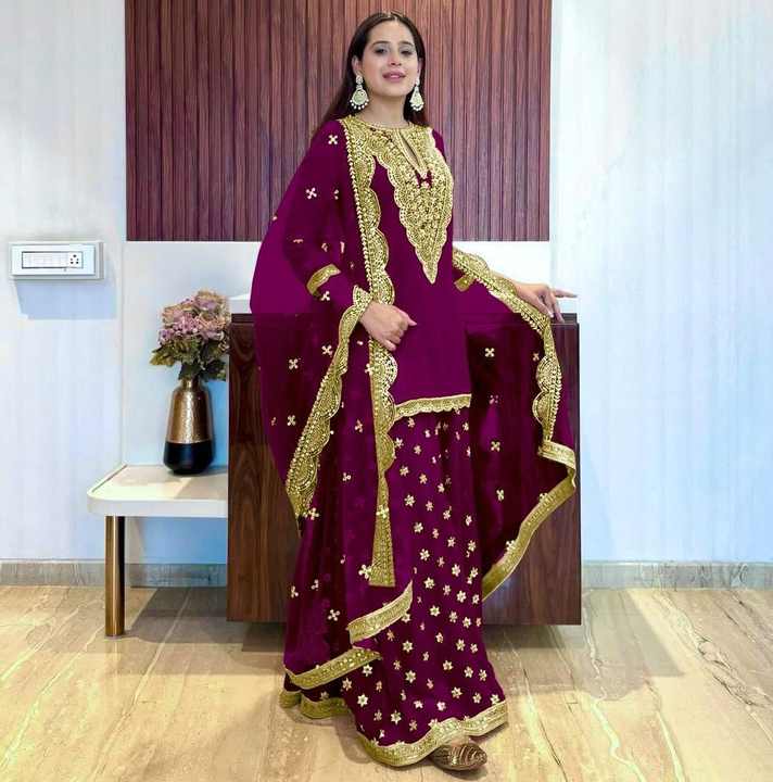 Traditional Heavy Faux Georgette Top and Palazzo with Heavy Embroidery Sequence Work Available in Wholesale Quantity