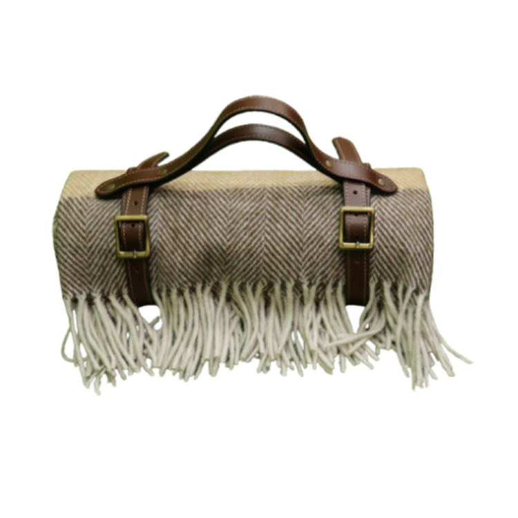 Traditional Herringbone Striped Blanket Mustard Yellow and Brown Wool Throw for All Seasons