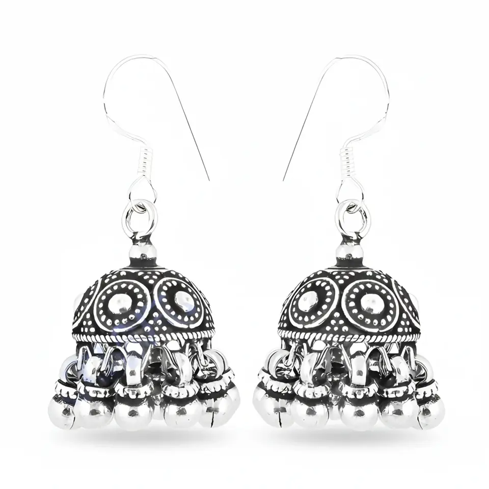 "Traditional Indian 925 Silver Jhumka Earrings for Women's Cultural Collectible Gift"
