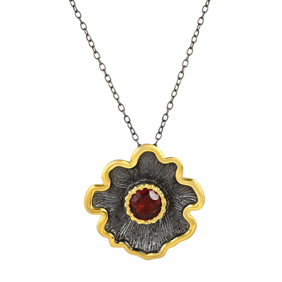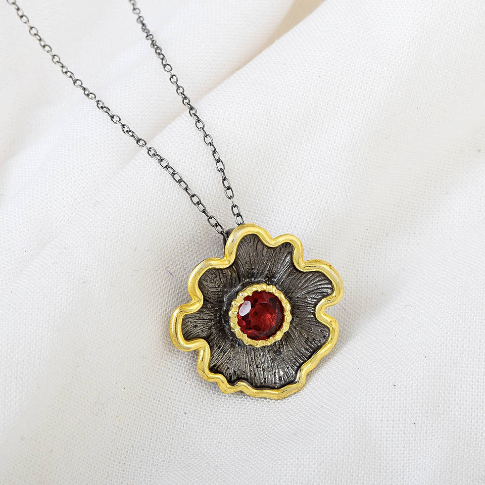 Traditional Indian Ethnic 925 Sterling Silver Chain Necklace Natural Round Garnet Gemstone Charm Pendants Fine Jewelry For Women