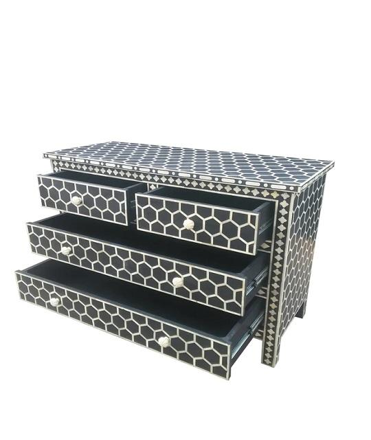 Eco-Friendly Mid-Century Modern Traditional Indian Bone Inlay Furniture Chest of Drawers for Living Room Hotel Hospital Use