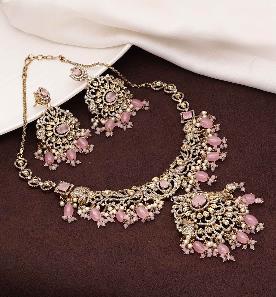 Traditional Indian Antique Imitation Jewelry with CZ Stones Luxury Brass Mehndi Plated Necklaces for Weddings