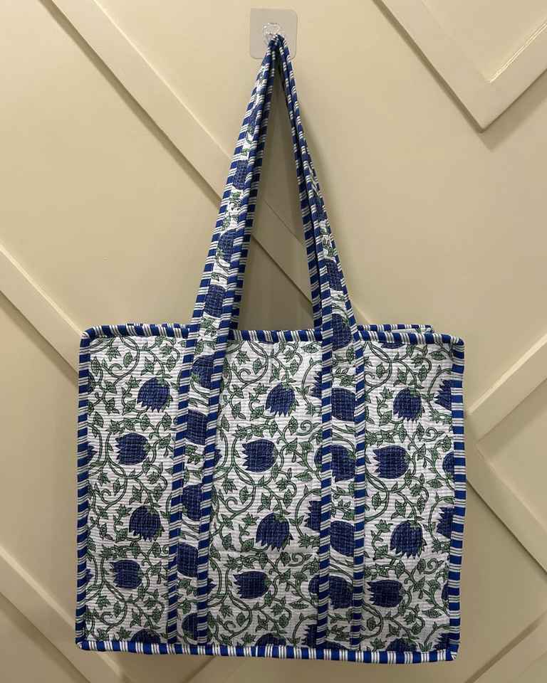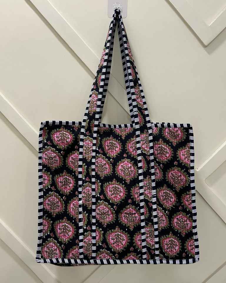 Traditional Indian Cotton Tote Bags Hand Stitched Floral Shopping Shoulder Quilting Bags Large Casual Bags Women's Handbags