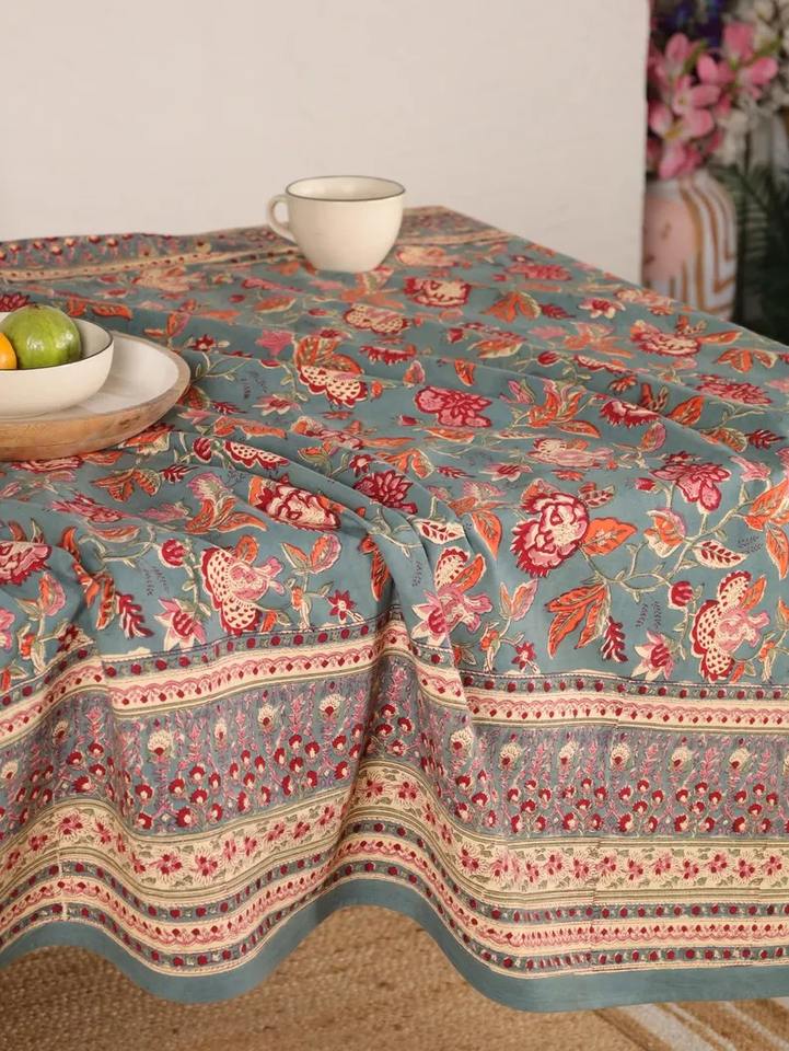 Block Print Floral Cotton Table Cover