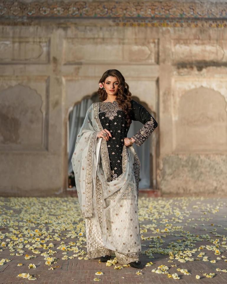 Traditional Indian Embroidery Sequins Kurta Payjama Ready-Made Lace Border Summer Winter Party Wear Indian/Pakistani Clothing