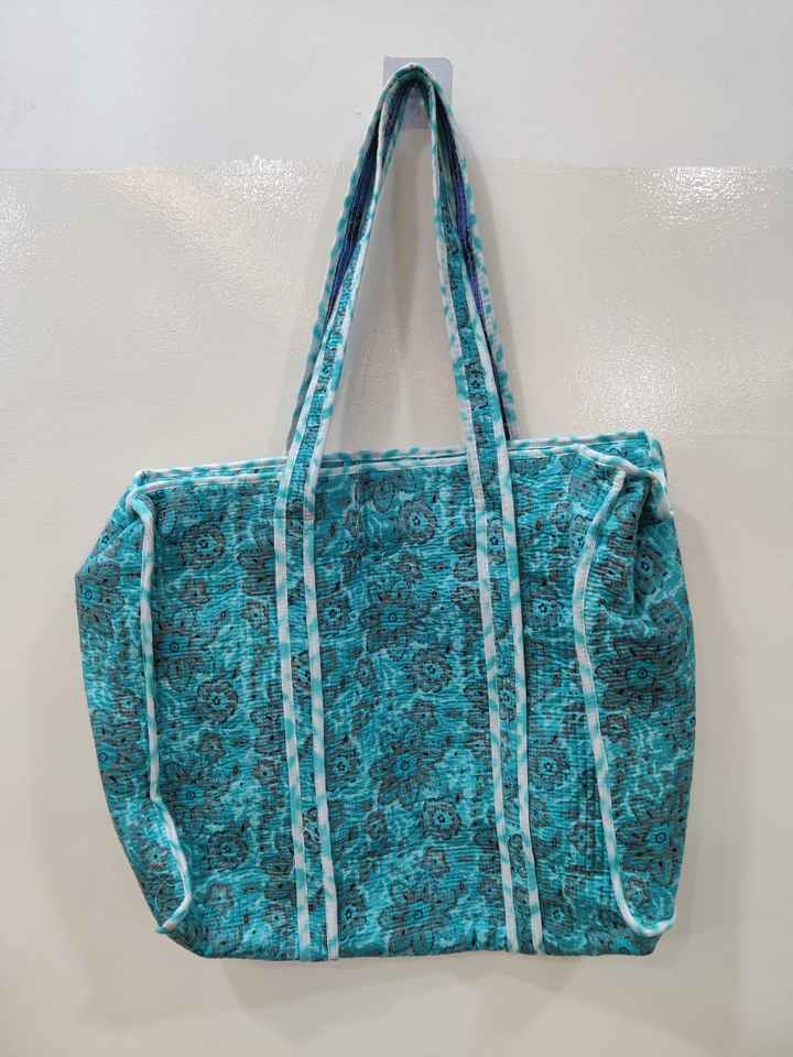 Traditional Indian Handcrafted Tote Bag with Hand Block Prints Shoulder Shopping Bag with Pockets Large Quilted Zipper Tote Bag