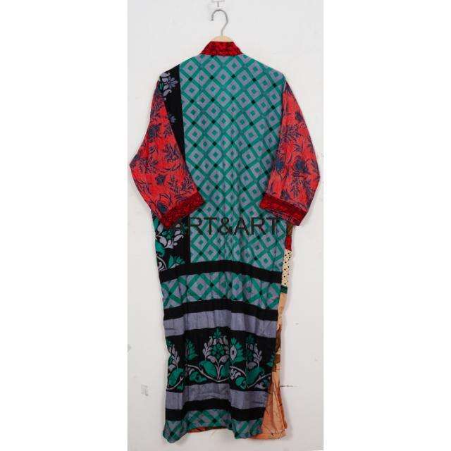 Traditional Indian Silk Sari Kimono Women's Vintage Full-Length Maternity Gown Comfortable Sexy Belted Kimono Plus Size