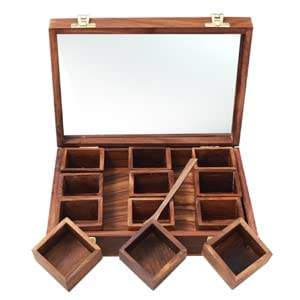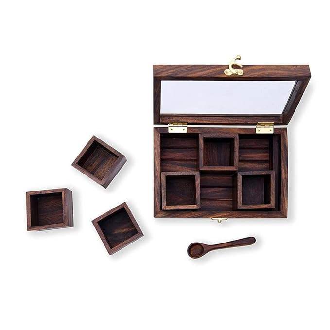 Traditional Indian Wooden Handmade Masala Dabba Spice Container-Dishwasher Safe Customizable Color Home Hotel & Restaurant Use