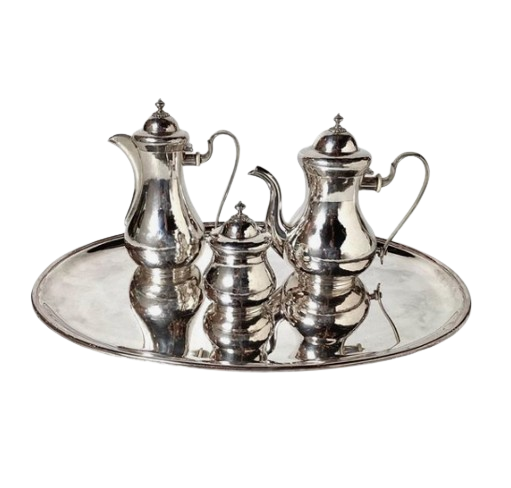 Traditional Intricated Arabic Catering Serving Tea Set Wooden Handle Hotel Restaurant Stainless Steel Metal Tea Pot Set