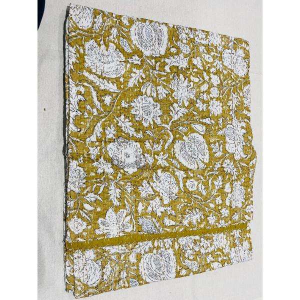 Traditional Kantha Cotton Quilt Bedspread With Hand Block Printed Motifs And Layered Texture For Warm Comfortable Bedding