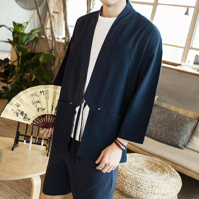 Traditional Kimono Men Cardigan Black Coat Fashion Cloak Beach Shirt Summer Men Unisex Samurai Clothing Japanese Men