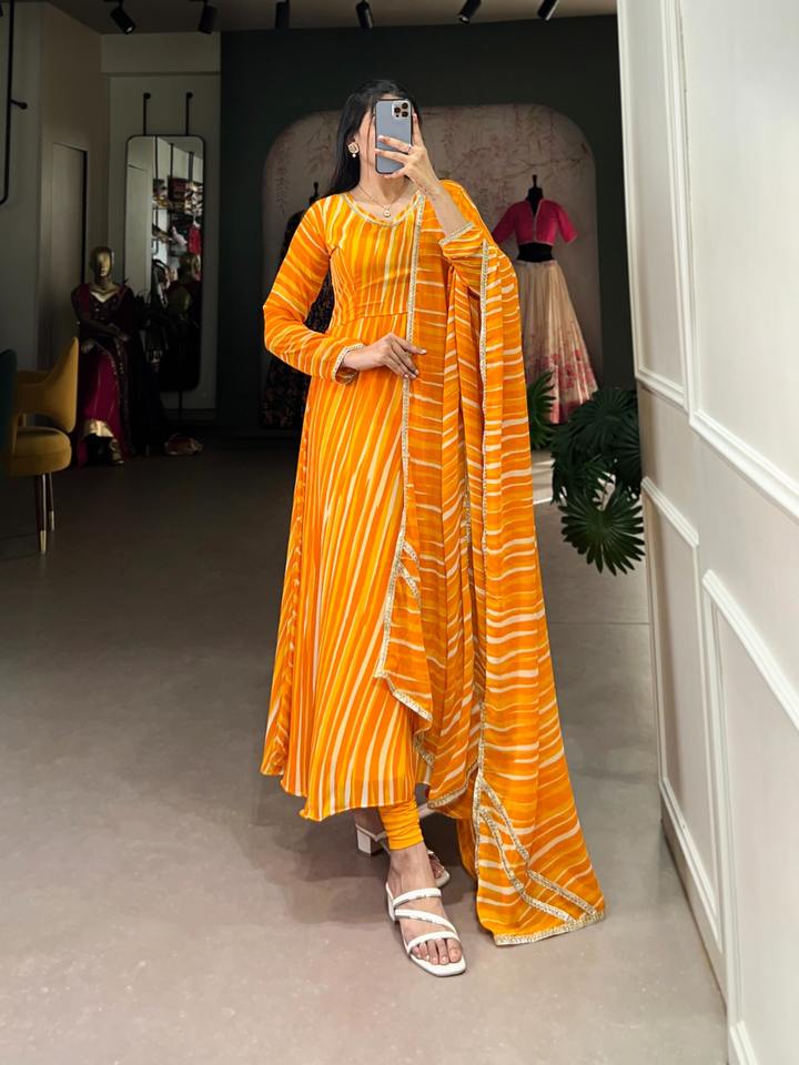 Traditional Leheriya Anarkali Dress in Vibrant Colors with Stunning Georgette Embroidery for Worldwide Export from India