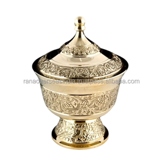 Traditional Luxury Handmade Brass Bowl Sugar Chocolate Candy and Dry Fruit Metal Container With Engraved Design at Best Price