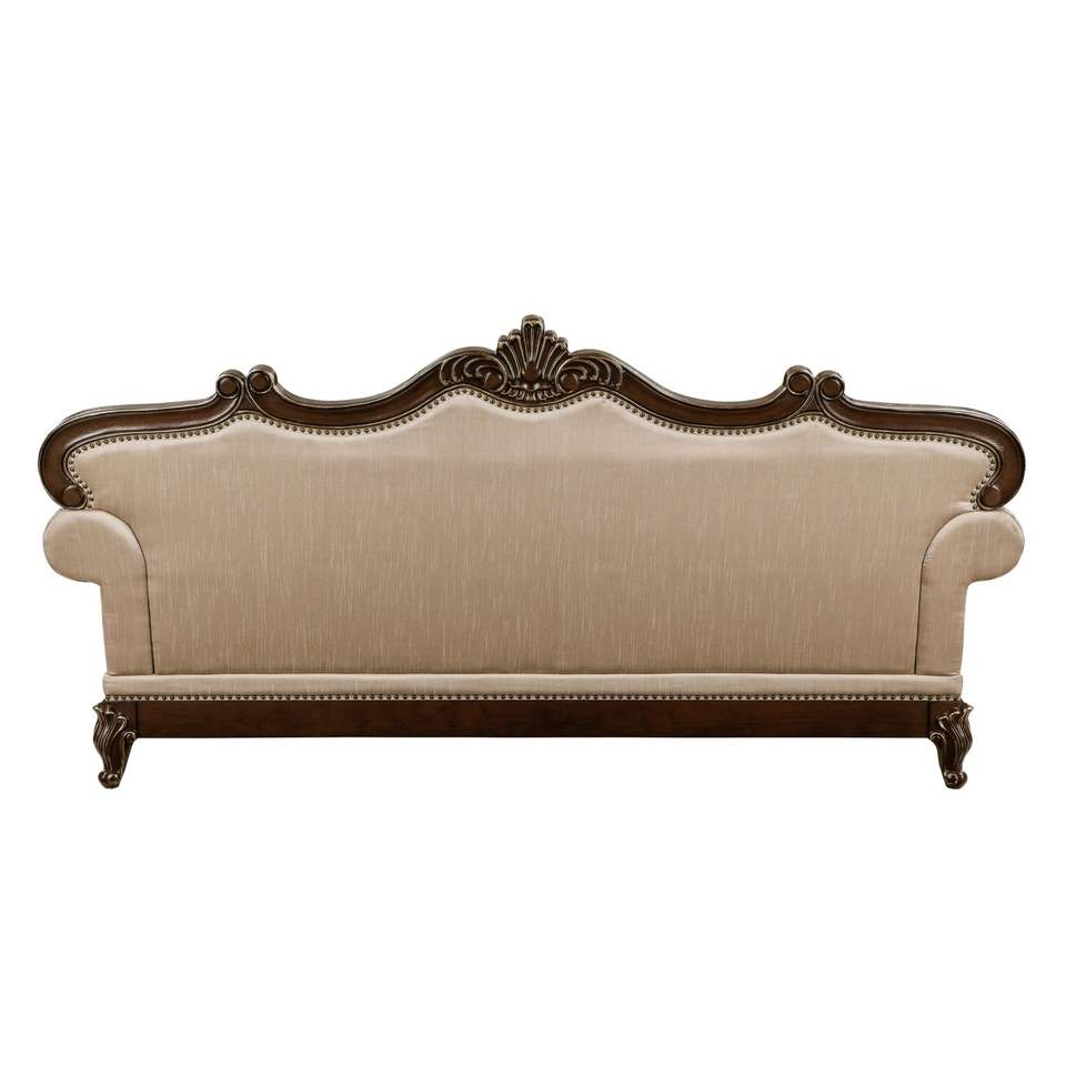 Traditional Luxury Solid Wood Sofa Formal Design with Cherry Finish and Gold Tipping for Living Room 1pc Furniture