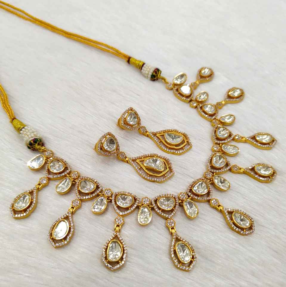 Traditional Mosenite Jewelry Set Necklace with Earrings Pearl Drop Gold Plated Perfect for Bridal Wedding and Ethnic Events